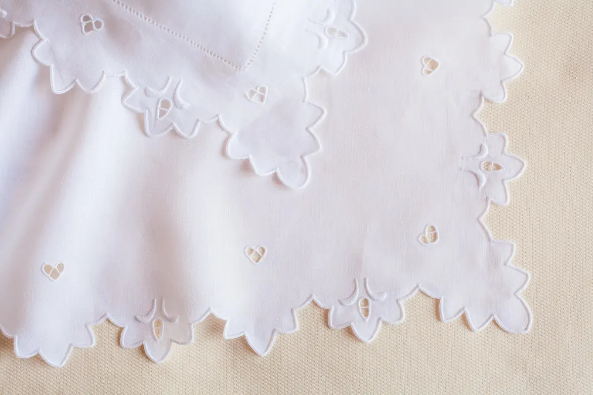 Jogo de cama bordado com richelieu, bastidos e caseado.