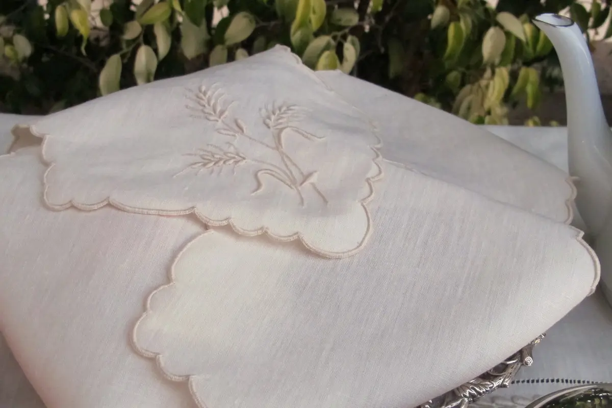 Pano do pão em linho bordado com bastidos, ponto corda e caseado.